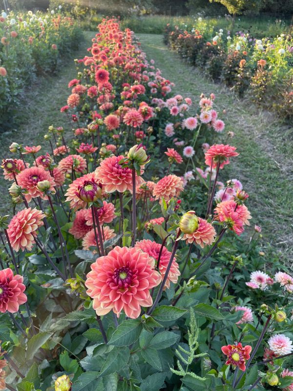 Auf unserem Blumenfeld in Pichl bei Wels findest Du über 150 verschiedene Dahliensorten auf 3.500m2. Kaum eine Pflanzengattung bietet eine so große Vielfalt an Blütenformen, -farben und -größen wie die Dahlie. Die Blumentankstelle ist das perfekte Ausflugsziel im Sommer. Dahlien sind Sommerblumen und blühen von Juli bis zum ersten Frost. Da die Knollen frostempfindlich sind, können wir sie über den Winter nicht in der Erde lassen, sondern lagern sie in einem frostfreien und trockenen Raum. Nach Frostende (Anfang Mai) setzen wir die Dahlienknollen in die Erde. Da wir strikt auf chemische Spritzmittel auf unserem Feld verzichten, werden die Dahlien mit viel Liebe gepflegt und versorgt. Dazu gehört vor allem das regelmäßige Unkraut zupfen, um sicherzustellen, dass die Dahlienstöcke ausreichend Platz und Kraft zum Wachsen haben. Sobald die Pflanzen größer sind, wird Verblühtes herausgeschnitten, damit die Pflanze wieder mehr Energie für die neuen Knospen hat. Nach der Blütenpracht im Sommer heißt es für die Dahlien ab in den Winterschlaf, sobald Temperaturen von unter 0 Grad erreicht sind. Die Knollen werden händisch ausgegraben und eingelagert, bis sie im Frühjahr wieder manuell in die Erde gelegt werden. Unsere Dahlienknollen sind keine Stecklinge, sondern werden Jahr für Jahr durch das Teilen der Knollenstöcke vermehrt.